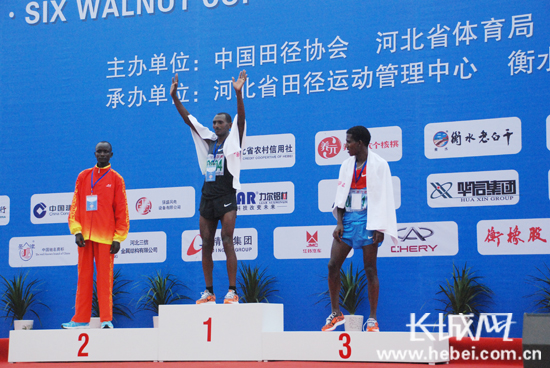 來自埃塞俄比亞選手雷格塞·海路·梅克楠獲得男子全程馬拉松冠軍。扈煒 攝